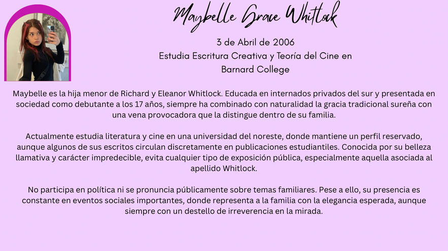 Nombre : Evelyn Charlotte Whitlock.